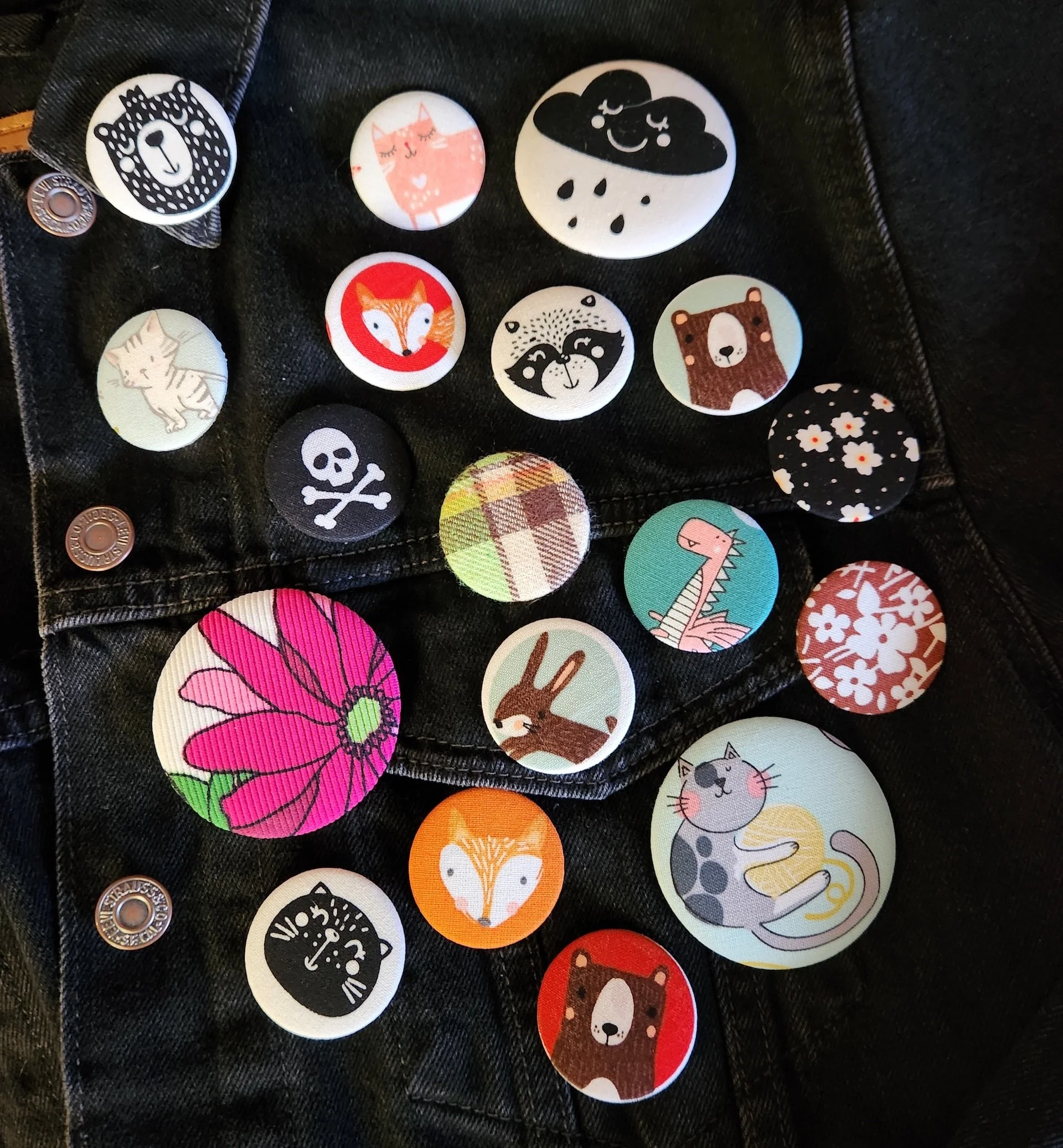 BUTTONS! All designs in this section are designed by me. I am always adding more so check back or visit my Instagram (link in contact section) for the most recent additions.